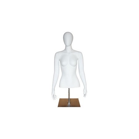 USED 4 ft H Matte white Egg Head Female Torso Mannequin with Arms and Table top Metal Base