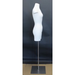 USED 5 ft 10 in H Off White Linen Covered Female 3Q Body Form Mannequin With Metal Flat Neck and Square Base